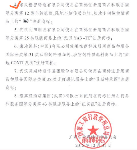 2015年12月31日,根據國家工商總局商標評審委員會商評馳字[2015]53號文件通告,東風精鑄“和鼎”圖形商標(商標注冊證號4055897/12類),被國家工商行政管理總局認定為“中國馳名商標”。“和鼎”商標成為東風汽車零部件(集團)有限公司首個成功注冊并入選中國馳名商標的汽車零部件品牌。
