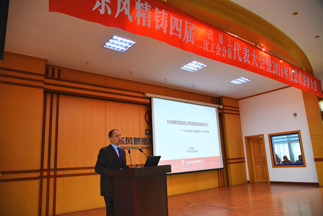 1月24日下午,東風精鑄在五樓會議中心隆重召開第四屆一次員工代表、二次會員代表大會暨2016年度總結表彰大會。