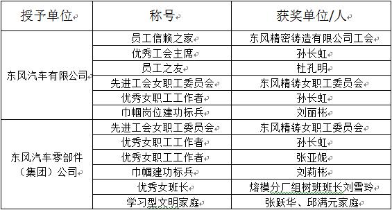 2016年度,公司工會緊緊圍繞生產(chǎn)經(jīng)營中心,認真履行工會職責(zé),突出“服務(wù)、維護”兩大工作主題,堅持“開創(chuàng)工會工作新優(yōu)勢、展示工會工作新作為、打造工會工作新品牌”的工作方針,深入開展“深化民主管理制度建設(shè)、主題競賽和提升科學(xué)化管理水平”工作,全面履行工會各項職責(zé),取得了可喜成績。在前不久召開的2016年度工會系統(tǒng)各級表彰會上,東風(fēng)精鑄獲得多項榮譽。